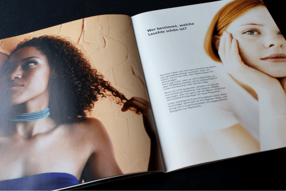 Konzeption und Design der Unternehmensbroschüre, grafische Gestaltung des Produktkatalogs für die neue Zielgruppe „Professional Lighting“.